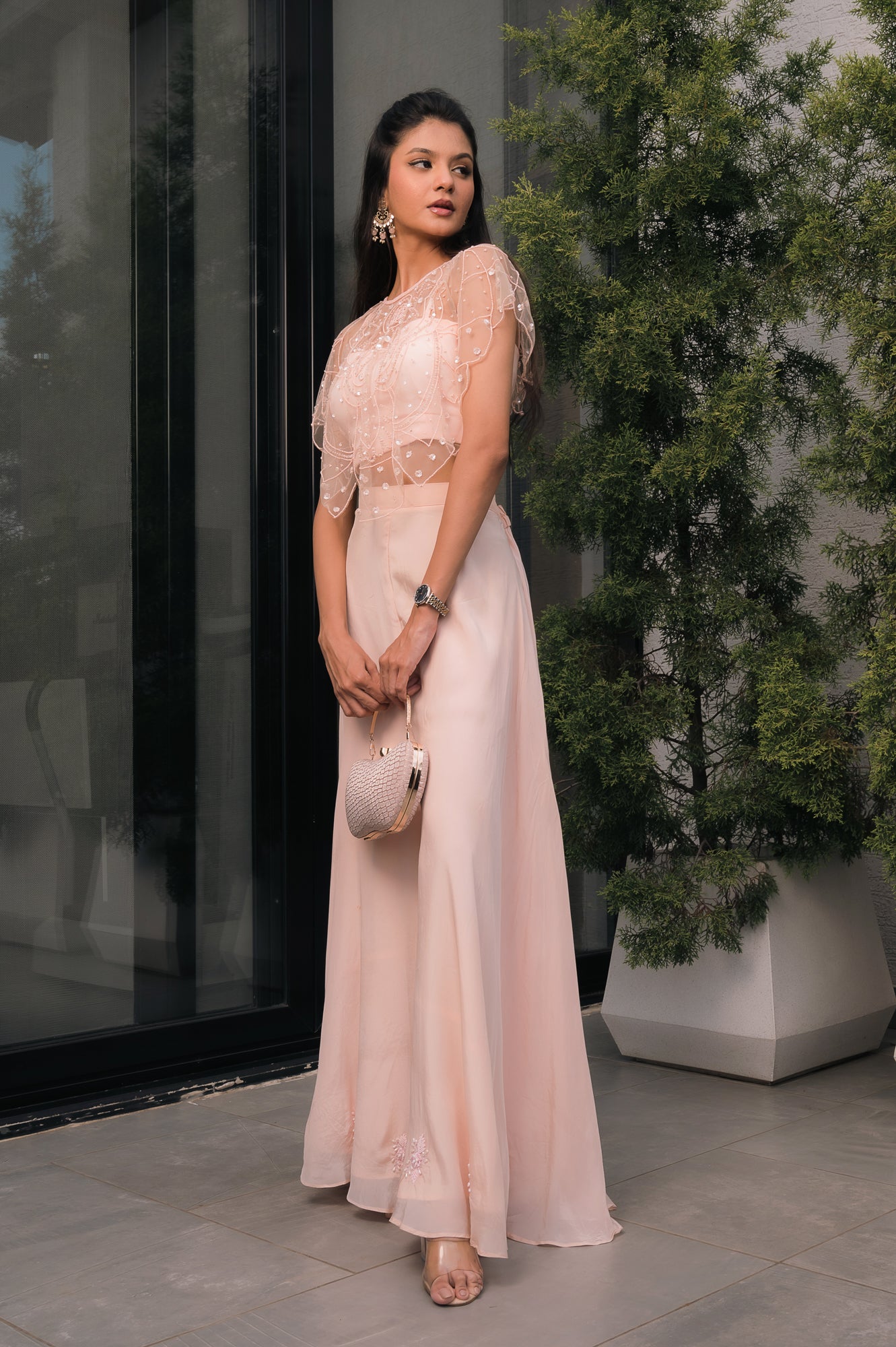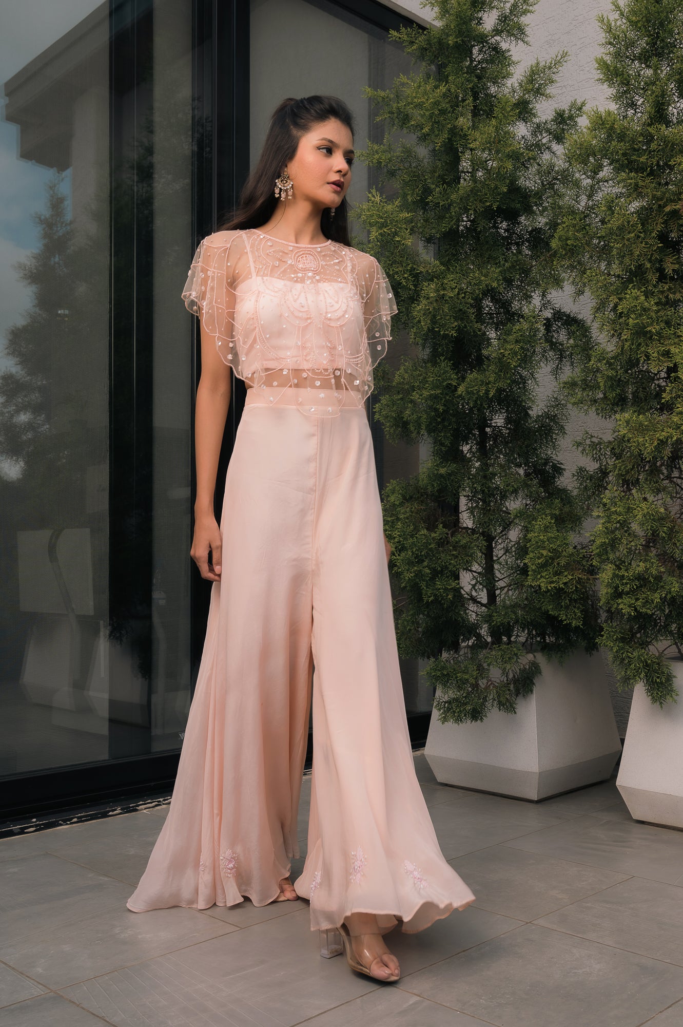 Embroidered cape with Palazzo