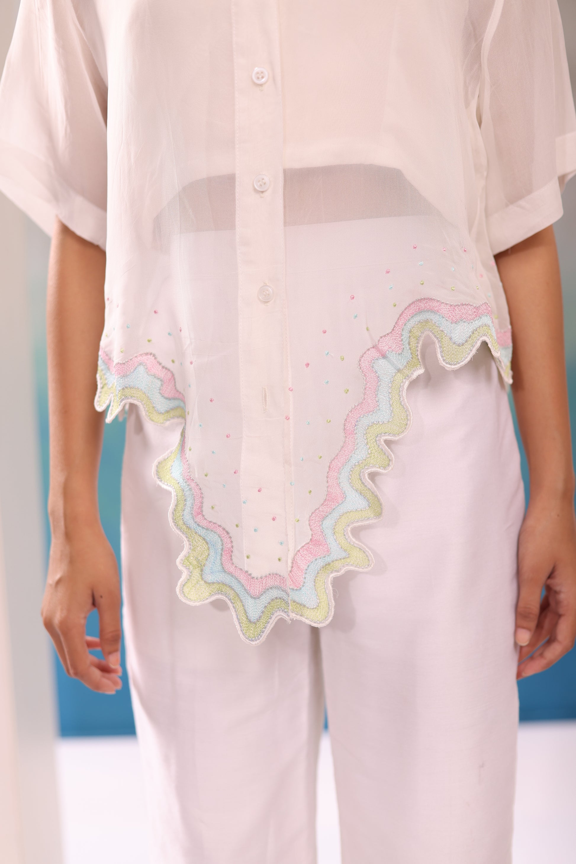 Embrace subtle elegance with our Sheer Embroidered Hem Coord Set, crafted from soft organza and cotton in soothing white and pastel tones. This refined Indo-Western coord offers a perfect blend of grace and comfort. Made to order for a tailored fit. Dry clean only.